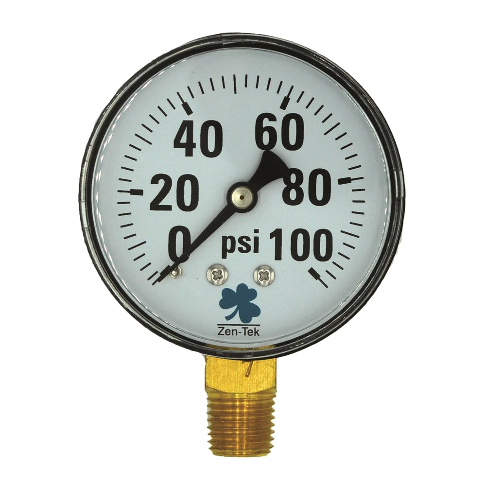 Zenport DPG100 Zen-Tek Instruments 0-100 psi dry air pressure gauge is constructed of a 2.5-inch diameter ABS case with 372 plastic window, 1/4 NPT brass bottom connection and brass internal mechanism. This quality gauge features grade A accuracy (1.6%) and features a high visibility dial and number readout.