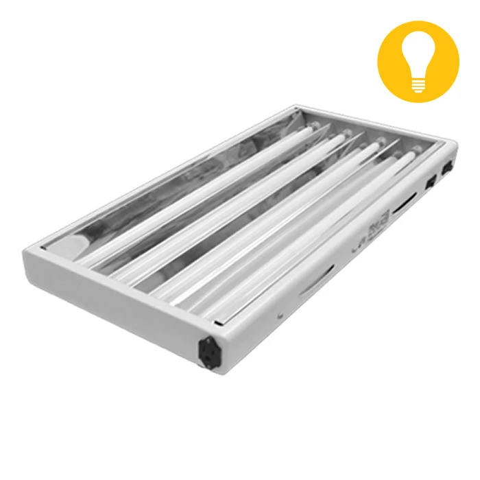LuxStar4 2′ T5 Fluorescent Light (Grow Bulbs) are 2 foot 4 bulb light fixtures that are perfect space-saving lights as they have a super low profile! These fixtures also emit significantly less heat than other reflectors so they can be placed closer to the tops of plants, giving them that much more light! The LuxStar T5s use high-efficiency digital ballasts and high-output bulbs to create the most efficient light source. They also features dual power switches so you have the option of dimming the fixture by 50%. The LuxStar2 is extremely versatile and can be hung in 3 different ways: overhead, vertical, or horizontal. This unit includes (4) InterLux Bulbs