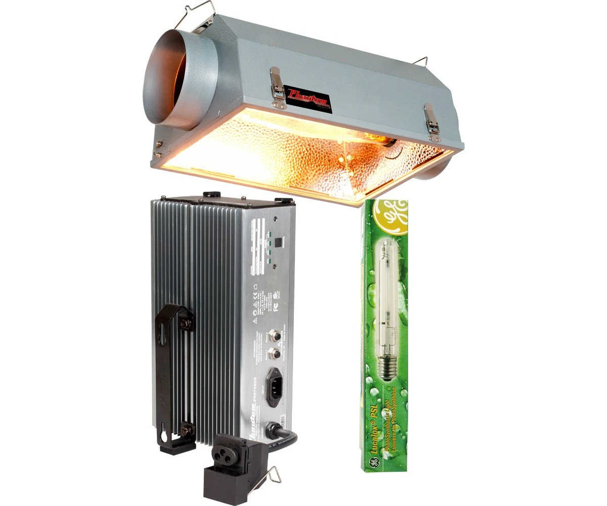 This system combines our Phantom 6″ air-cooled reflector with a Phantom 750W dimmable 120V/240V Digital Ballast and a GE Lucalox 750W High Pressure Sodium lamp. The Phantom 6″ AC reflector delivers a large footprint of usable light while keeping your growing area cool.