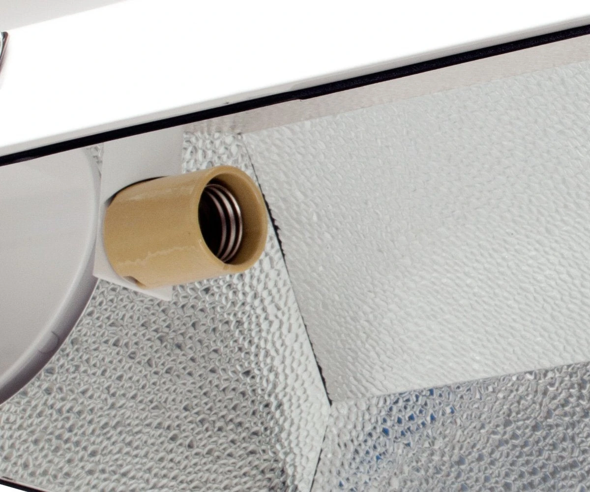 - SIZE MATTERS! Hydrofarm’s Raptor reflectors were designed with our customers’ needs in mind. They wanted bigger, broader, brighter light coverage, and our engineers designed it. Maximum air cooling with built-in flanges. Comes complete with cord set, hinged frame, tempered glass, and wire hangers.