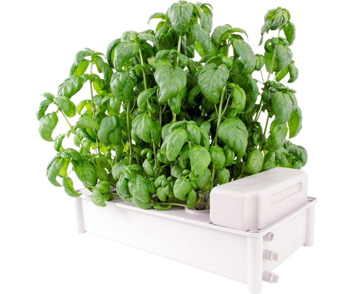 The Salad Box will provide you and your family with fresh greens without any of the hassles of larger gardens or systems. Only minimal assembly is required. The system includes one reservoir tray, one top plate lid with eight plant sites, one top-off bottle with cap, eight net cups, eight Root Wraps, one fifty-gram packet of general purpose nutrient, six drain plugs, and one instructions booklet.