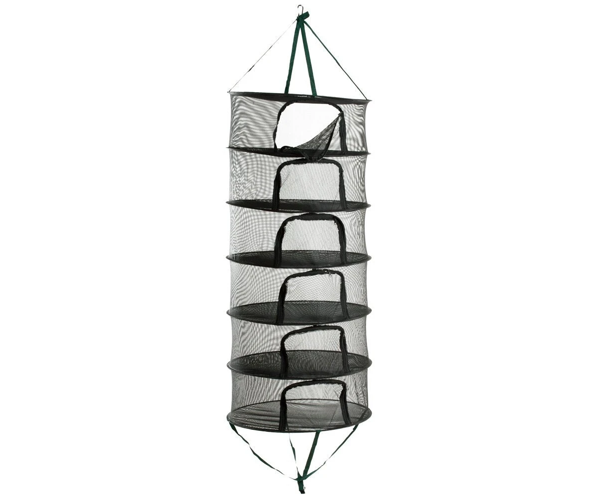 Breathable mesh allows for maximum air circulation so flowers and herbs dry fast! Six individual drying chambers zip shut to protect your harvest. Collapses flat for storage in the handy zippered case.