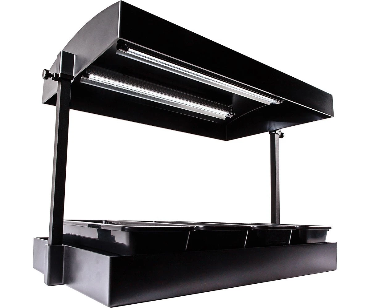 The Growlight Garden comes to you as a complete ready-to-grow garden. Just assemble and add your favorite starting mix, seeds, or starter plants of your choice, water, and you will be growing in no time. It’s just that easy! The Growlight Garden comes complete with T5HO lighting kits and reflectors, four seedling trays, wicking mat, and platform to keep your plants automatically watered.